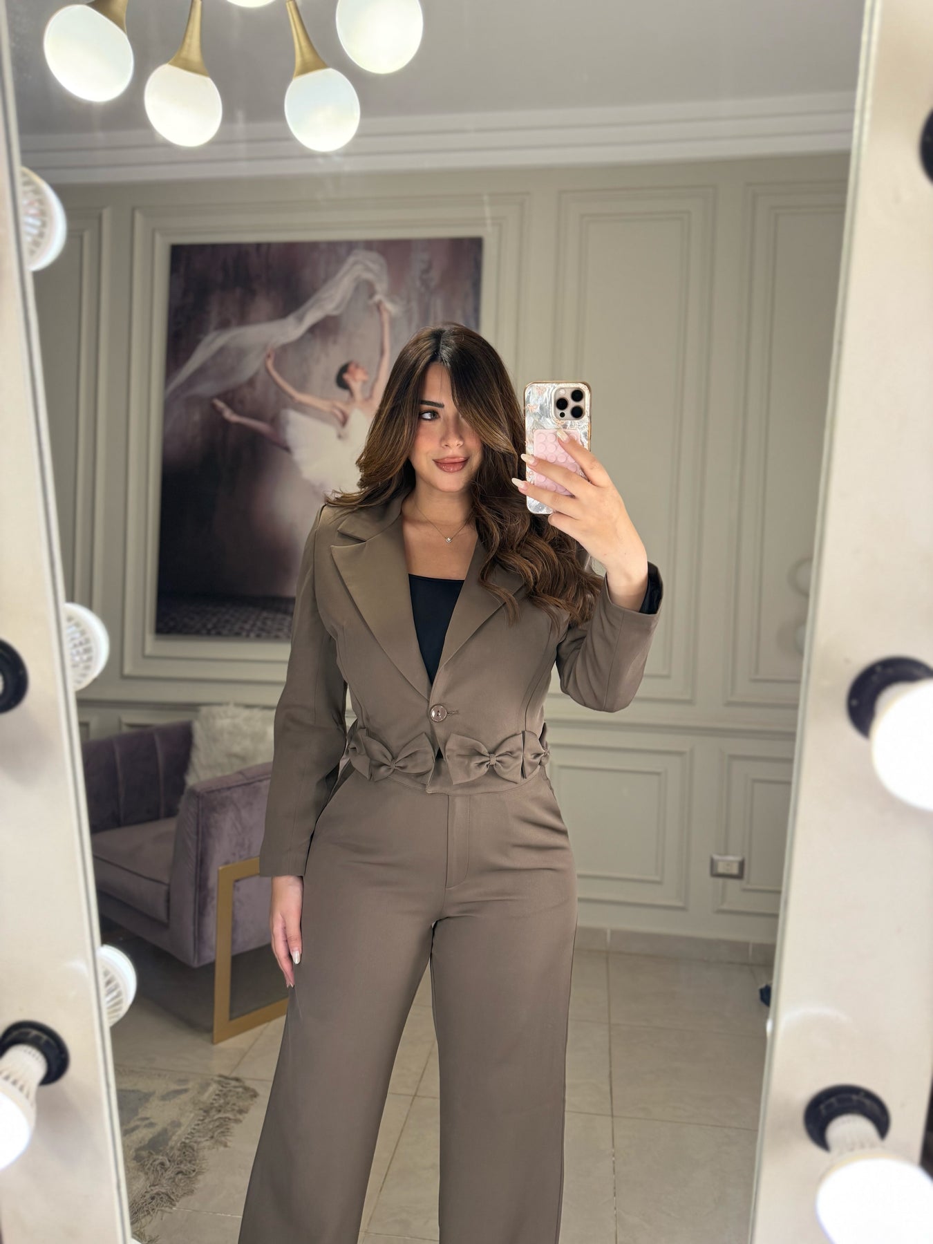 Main Character Bow Blazer Pants Set - Brown